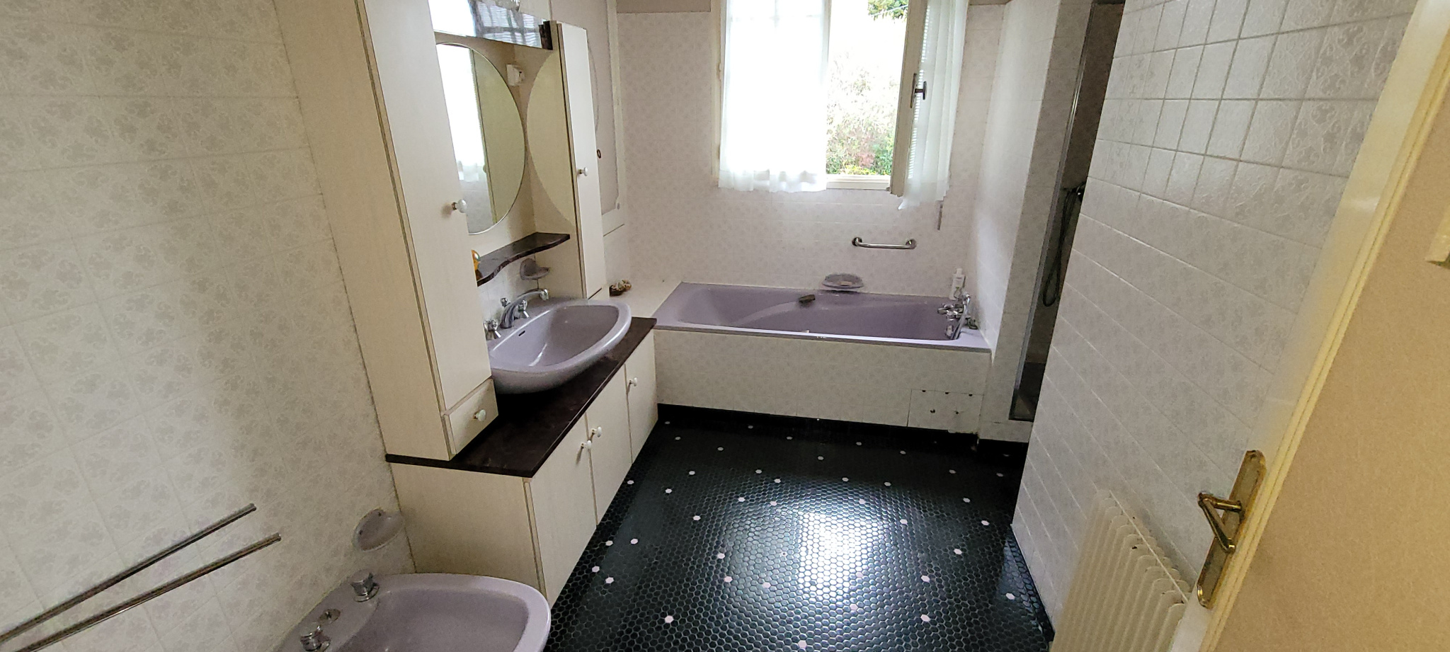 Maison à rénover de construction traditionnelle des années 1970, avec 3 chambres, jardin, garage, proche des commodités à pied +/- 149 m² de surface habitable dont 95m² chauffés sur deux niveaux, offrant de nombreuses possibilités d’aménagement. À l’étage Habitation principale : entrée, cuisine, salon/salle à manger avec balcon, deux chambres, salle de bains et WC séparés. Au rez-de-jardin : une chambre, buanderie/cellier, WC, salon/salle à manger donnant sur un jardin paysagé. Cet espace se prête parfaitement à la création d’un logement indépendant, à l’accueil de la famille ou à l’exercice d’une activité libérale. Garage non attenant de 39m² et abri de jardin. Un bien sain et évolutif à personnaliser selon les envies. Chauffage : Chauffage central fuel "chaudière de 2014 ". Eau chaude : ballon électrique. Menuiseries : bois avec survitrage. Terrain : 1500m² aménagé et clos. Assainissement : Tout à l’égout