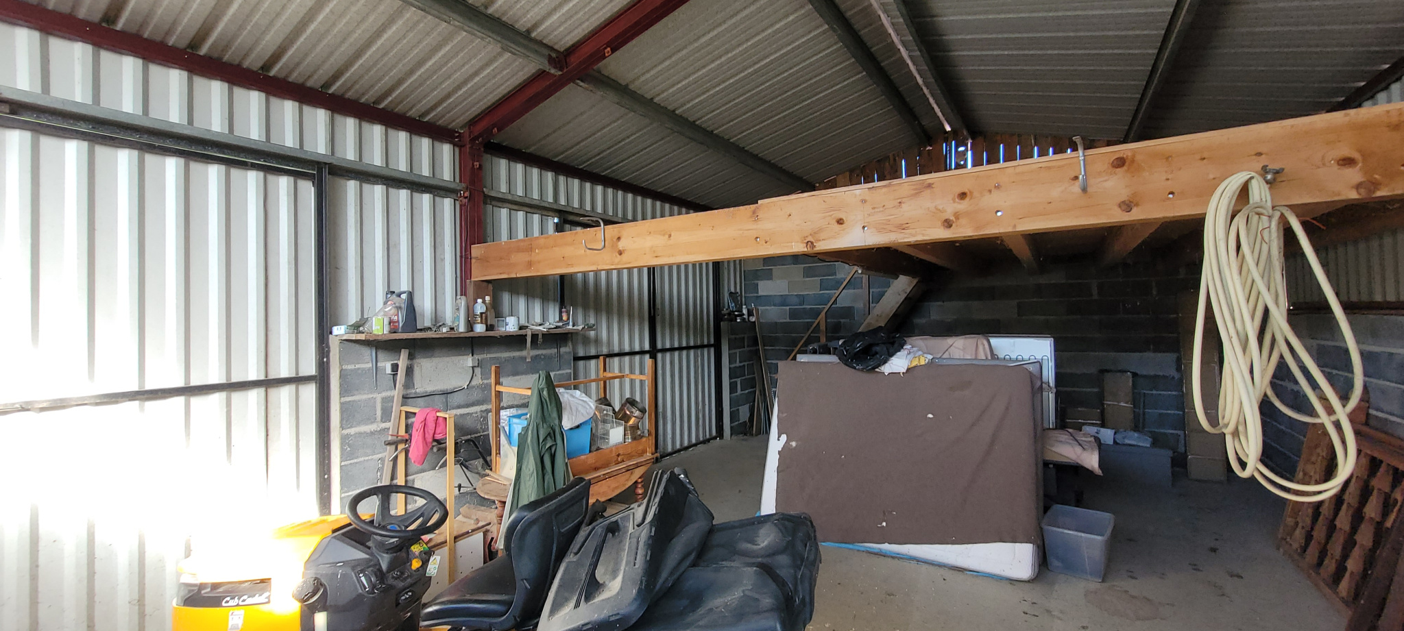 Les dépendances attenantes — cuisine d’été, cellier, atelier — ainsi que les structures indépendantes (grand hangar de 56 m² avec mezzanine, abri de 56 m² et auvent) ouvrent de nombreuses possibilités : stockage, activité artisanale, atelier créatif ou espace dédié aux véhicules. Une terrasse couverte et un puits viennent compléter l’ensemble.